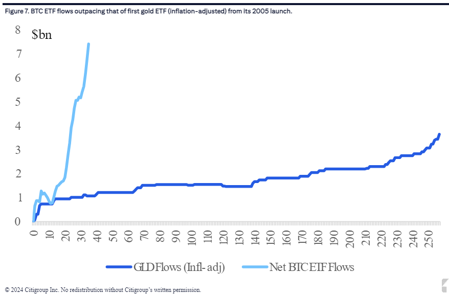 第一只黄金 ETF 花了2年时间才达到100亿美元的规模,而这只比特币ETF只用了2个月就做到了