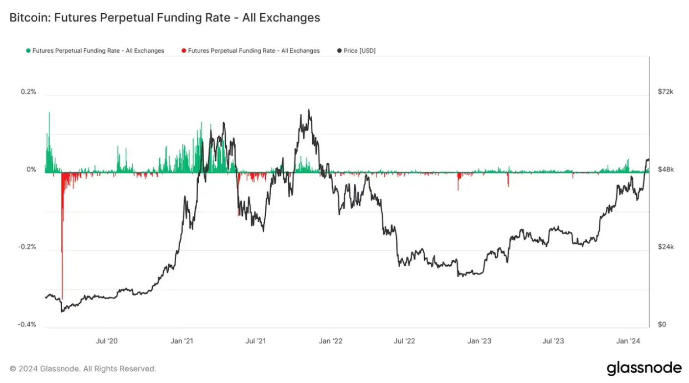 各家交易所的比特币永续合约资金费率也开始升温,但肯定远不及此前牛市周期的峰值水平。