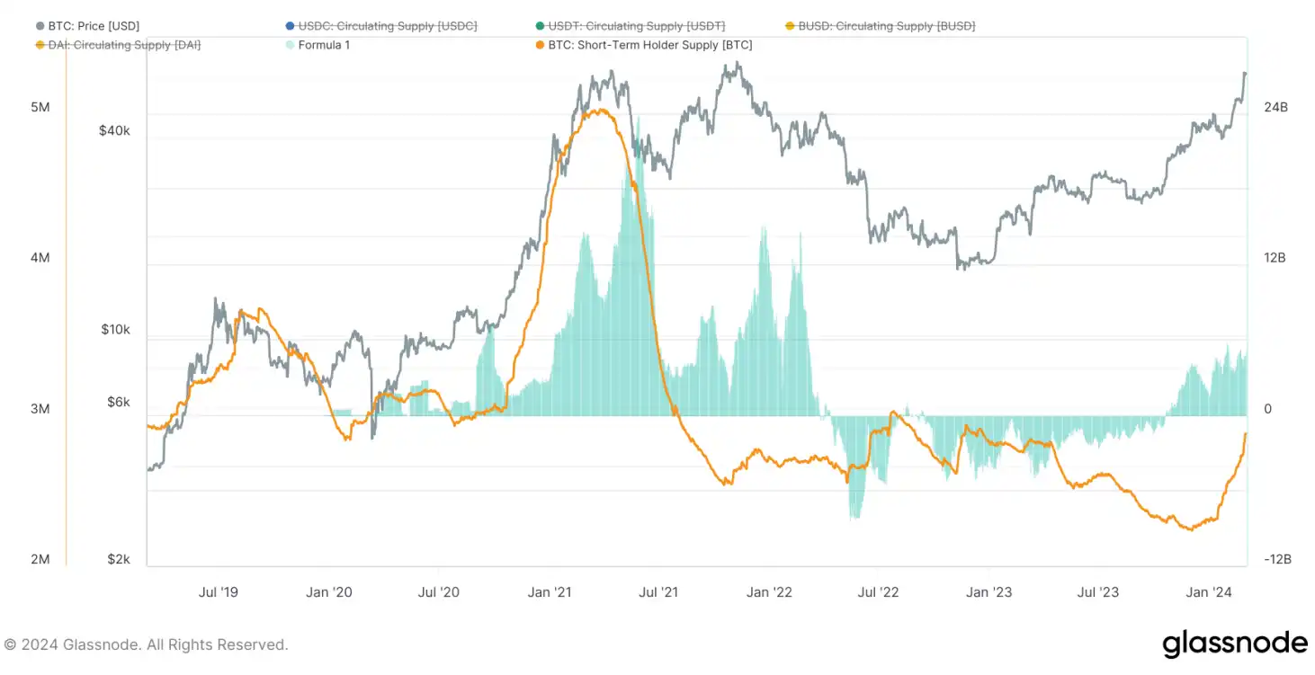 过去短短⼀周时间,短期持有者成本快速增加,从 42K 附近来到当前的 46K。BTC 持续性的轧空、积极 情绪指标值迈入新阶段,也标志着市场情绪进入 FOMO 状态。