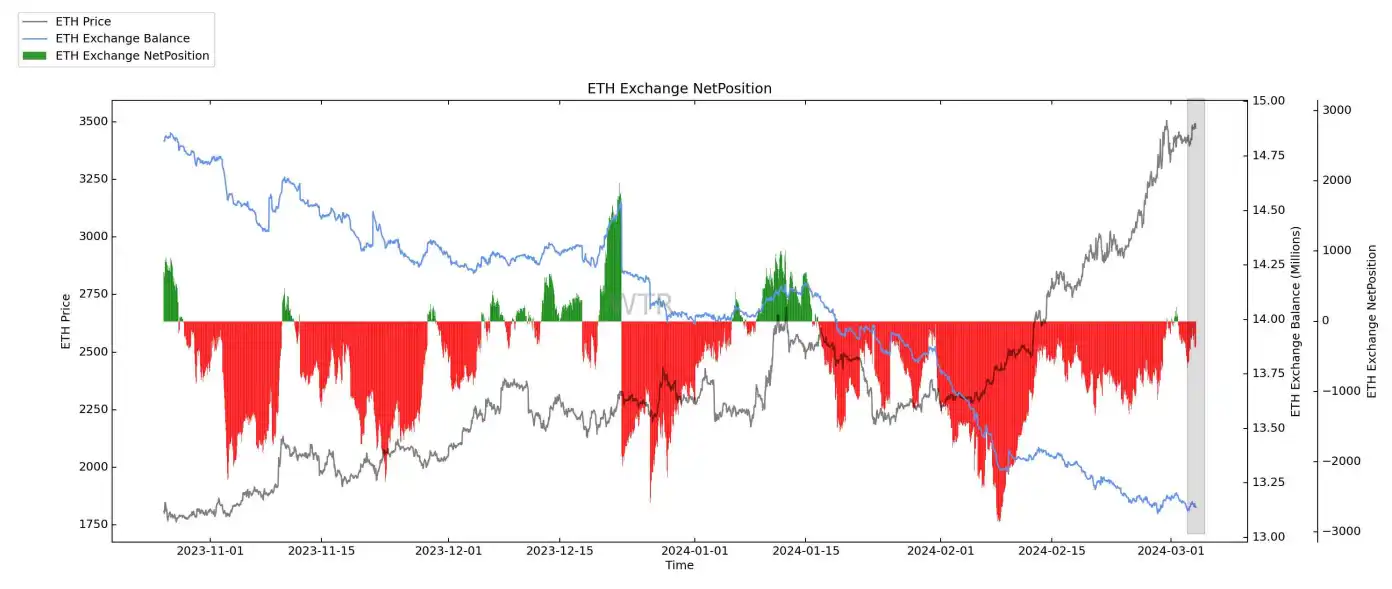 大饼当前处于大量流出累积状态,交易所内净头寸持续性走低。