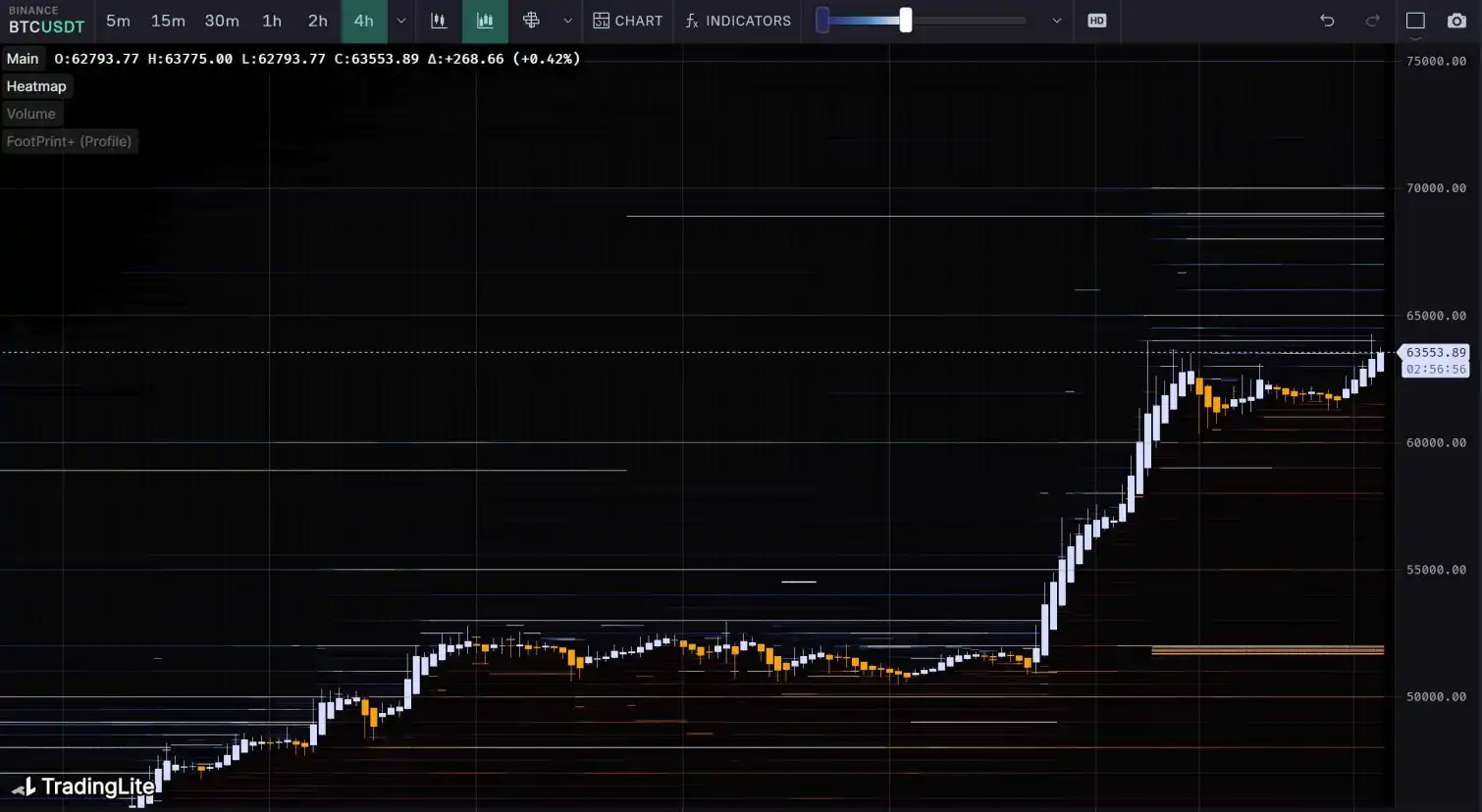 本周从 2 月 26 日到 3 月 4 日,冰糖橙最高附近$64000,最低接近$50901,震荡幅度达到 25.7% 左右。观察筹码分布图,在约 61000 附近有大量筹码成交,将有⼀定的支撑或压力。