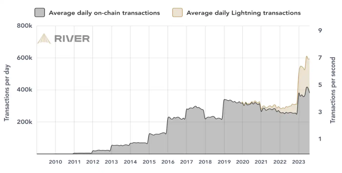 ● 此外,平均而言,Lightning 网络每天处理了至少相当于 47% 的比特币链上交易量。