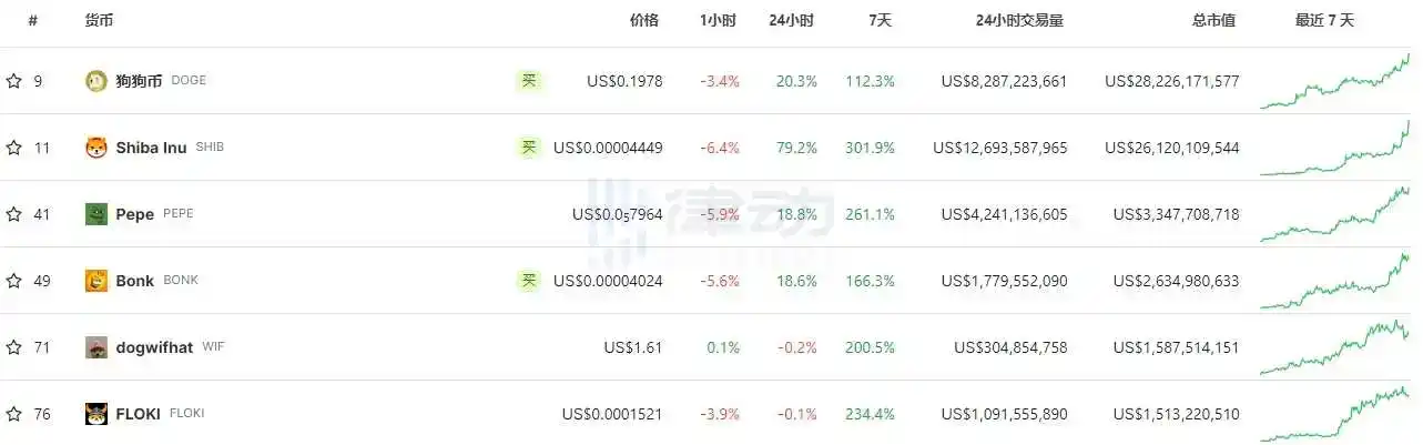 模因币涨势出现分化,SHIB 领涨,24 小时涨幅达 94.8%