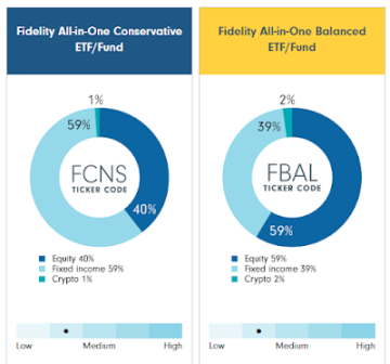 上面富达的图表就是一个典型的例子,它建议客户保守地将 40% 的财富投资于「股票」,59% 投资于「固定收益」,剩下 1% 投资于「Crypto」。