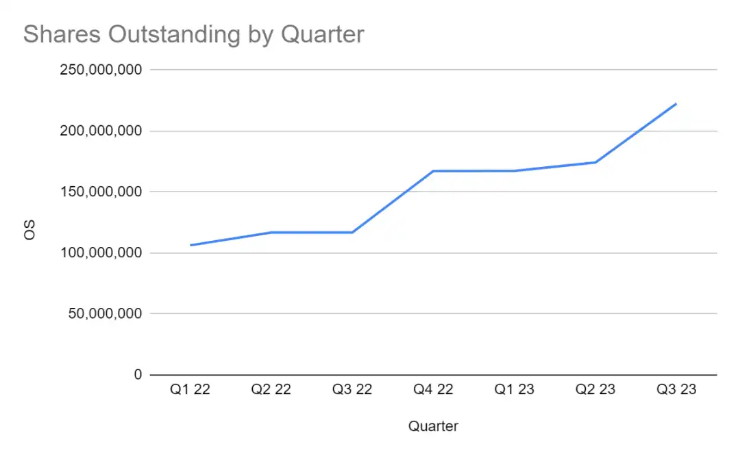 不过,Mara 自身也有一定风险。第一是股票持续增发,其流通股从 2022Q1 的 1.063 亿股增加到 2023Q3 的 2.226 亿股,增长近 110%。这对其股价是一个负面因素。
