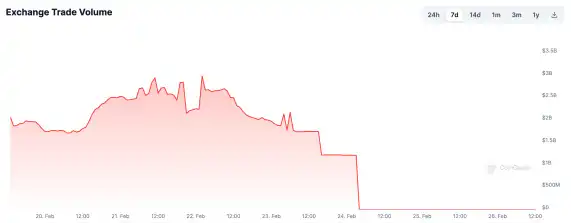 但这似乎并不影响平台运营,在退出上述地区后,23 年 9 月,BitForex 就称自身为全球市值领先的加密货币交易所之一,日交易量约为 26 亿美元。根据 CoinGecko 数据,2 月 22 日至 24 日期间,该交易所的交易量从 25 亿美元下降至 10 亿美元。目前已无数据机构记录追踪该平台,但有趣的是,早在 19 年,BitForex 就被 Chainalysis 曝光过交易数据造假,指出平台真实流动性仅为其报告交易量的 1/800,造假比例让人瞠目结舌。