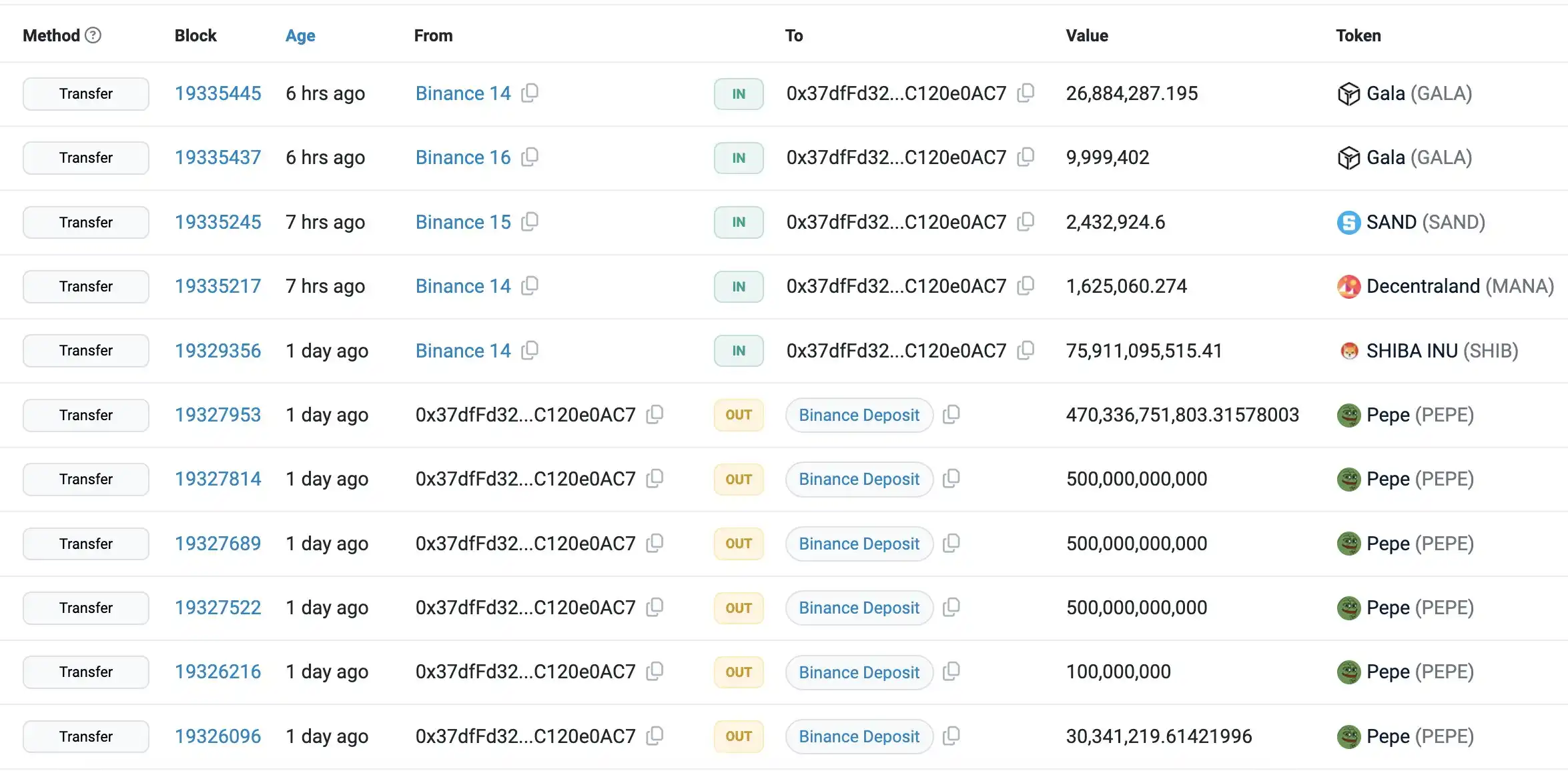 除消息面因素外,此次板块普涨离不开市场资金的提前布局。3 月 1 日,据 Lookonchain 监测,某鲸鱼地址出售了全部 1.97 万亿枚 PEPE(约合 607 万美元),获利 349 万美元。然后购买了 759 亿枚 SHIB (约合 89.3 万美元)、160 万枚 MANA (约合 107 万美元)、243 万枚 SAND (约合 148 万美元) 以及 3688 万枚 GALA (约合 146 万美元)。