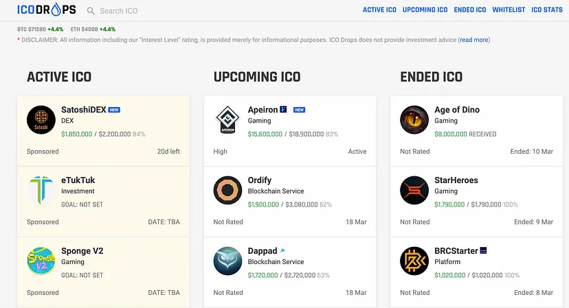 ICODrops 基本上涵盖了未來,現在和現在的项目 ICO 情況。