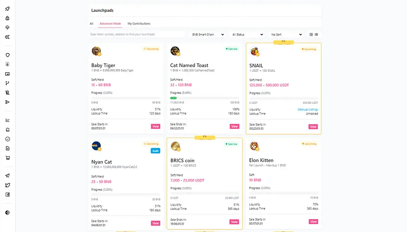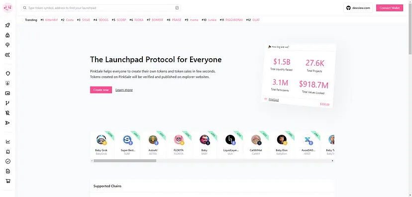 用户友好的界面和操作简便性:产品设计趋向于无需深厚的技术背景即可操作,如 PinkSale 的代币启动平台,用户只需几次点击即可设计和启动自己的代币。这种设计趋势使得更广泛的用户能够轻松地接入和利用这些工具。