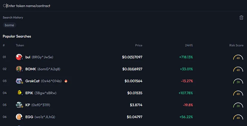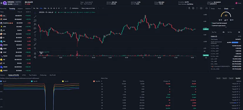 Birdeye 基本上是 CoinMarketCap 的扩展版本,涵盖了各种迷因币的信息。用户可以在上面查看项目的价格、交易量、蜡烛图等等。