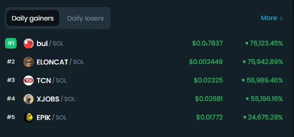 界面显示了最盈利或热门的代币配对,供交易员参考。