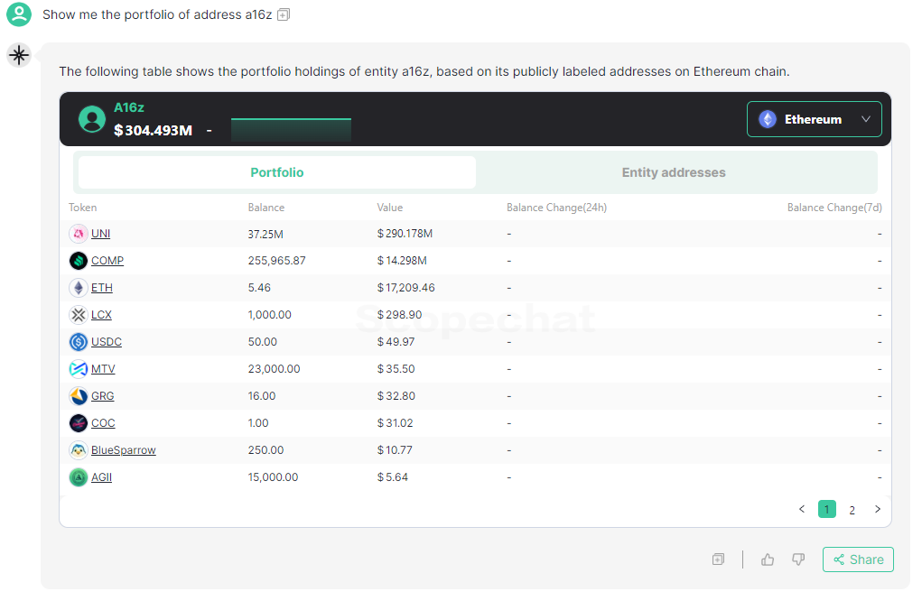 据 Scopechat 和 Rootdata 统计的链上地址数据,A16Z 公开地址的最大仓位是Uni,其次是COMP和ETH。