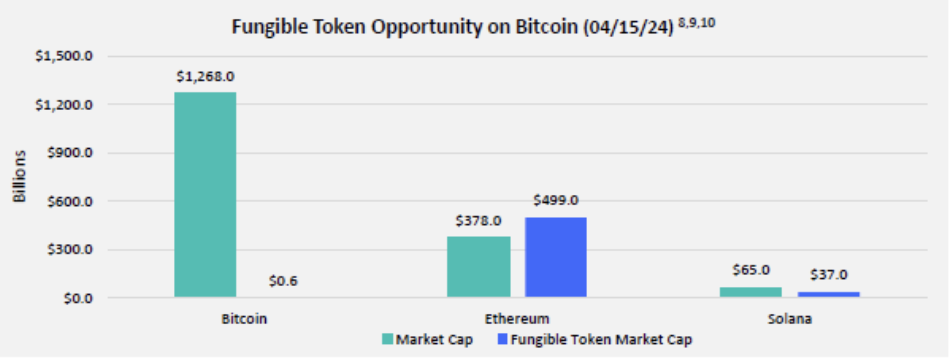 ● 市场定位:比较以太坊和Solana,比特币的可替代代币市值相对较小。然而,像Runes这样更高效的代币标准的引入可能有助于比特币缩小差距。