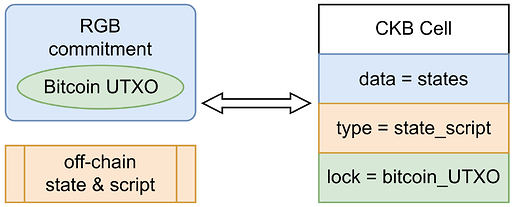 RGB++通过集成Nervos CKB区块链上的智能合约来增强比特币的功能。RGB++的突出特点是其同构绑定,它同步比特币和CKB Nervos区块链之间的资产管理。从实际角度来看,每个比特币UTXO都与CKB区块链上的相应Cell(想象为“交易块”)链接。因此,当使用UTXO进行比特币交易时,它会自动记录在CKB区块链上,CKB上的相应Cell将被更新。