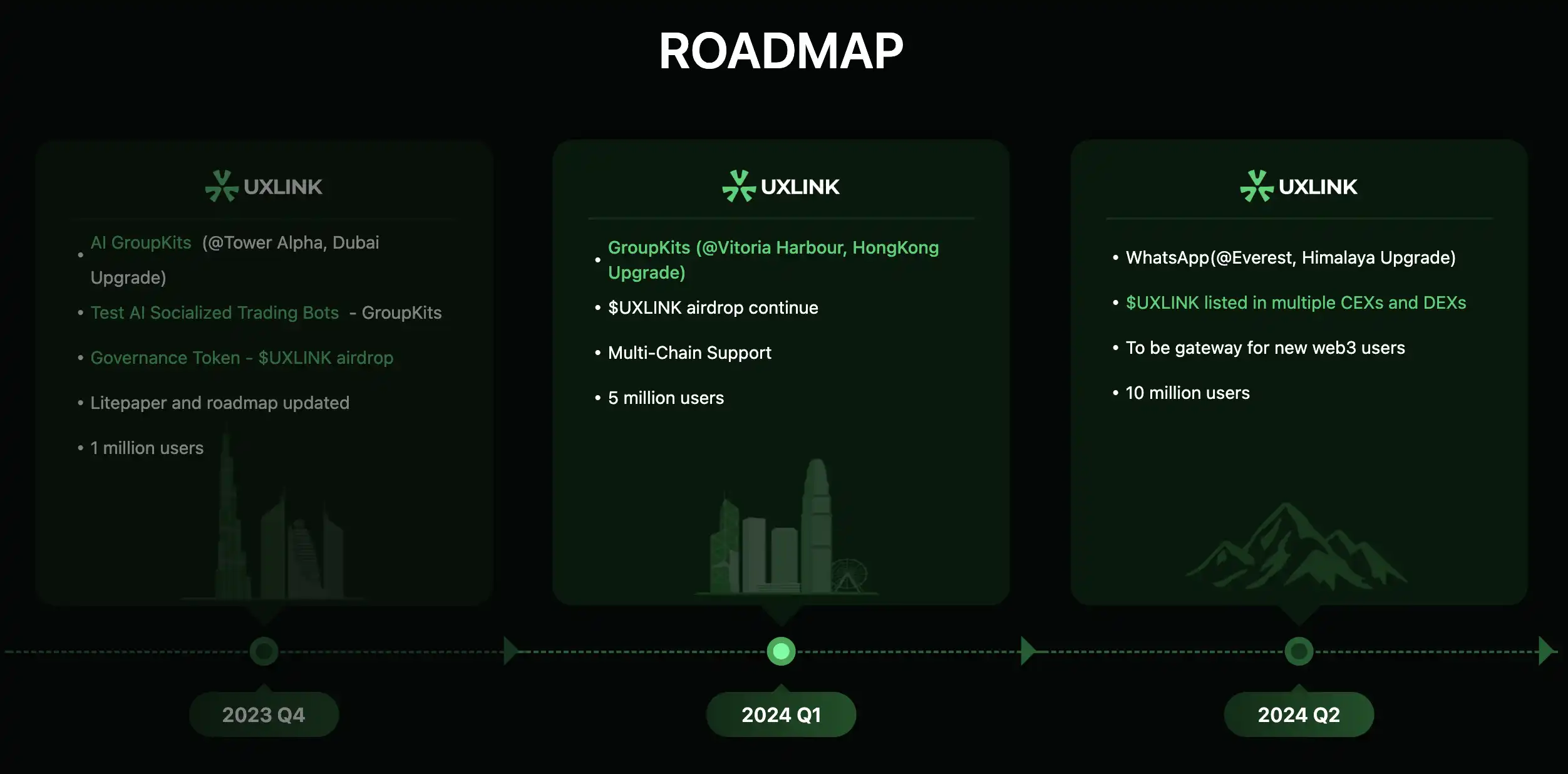而一个好的生态,除了要有好的应用和优质用户,开发者也是一块不能忽视的高地。UXLINK 有计划推出开发套件工具,服务普通开发者,并通过成立 UXLINK 社区开发者基金来支持更多开发者加入 UXLINK 生态,为 UXLINK 生态建设提供技术、资金上和用户增长侧的全方位支持。