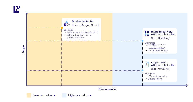 因此,EIGEN 代币有了用武之地 ---- 提供一种ETH之外的补充性新社会共识机制,来维护网络诚信和安全。专门解决这种"主观之间"的故障。