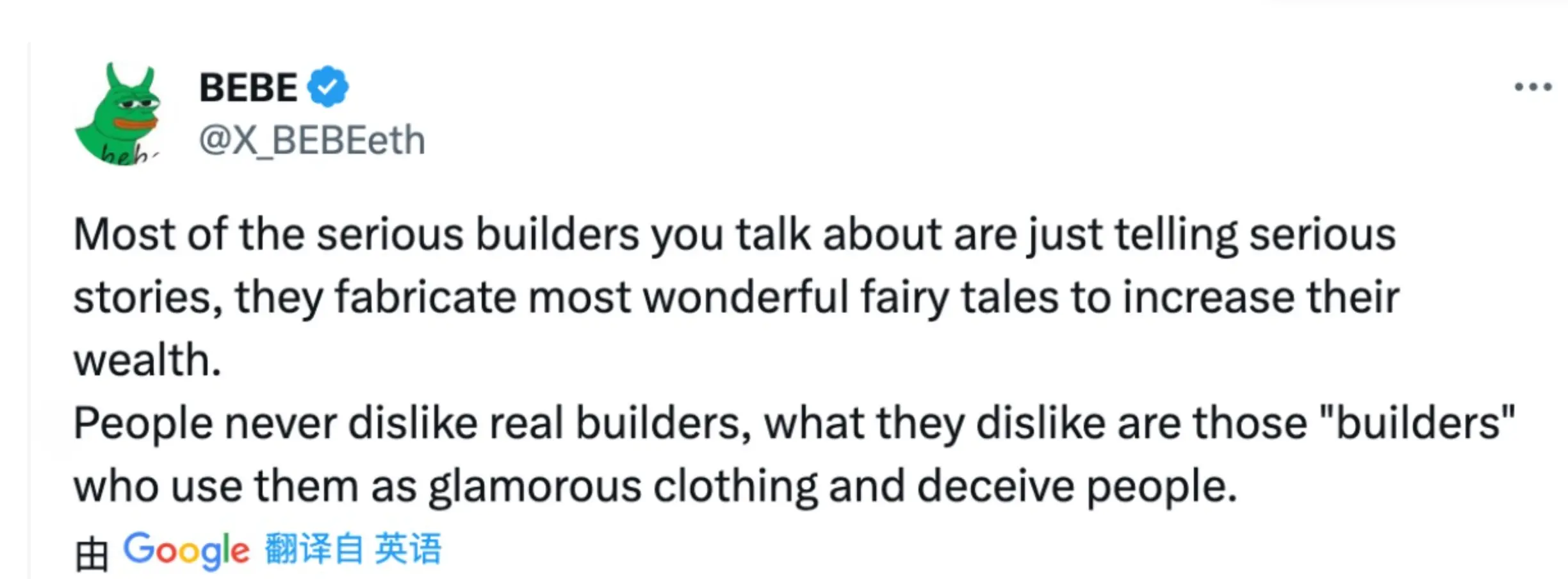 而@XBEBEeth 补刀到,没有人讨厌这些真正的建设者,只是讨厌用华丽叙事欺骗用户的「建设者」。