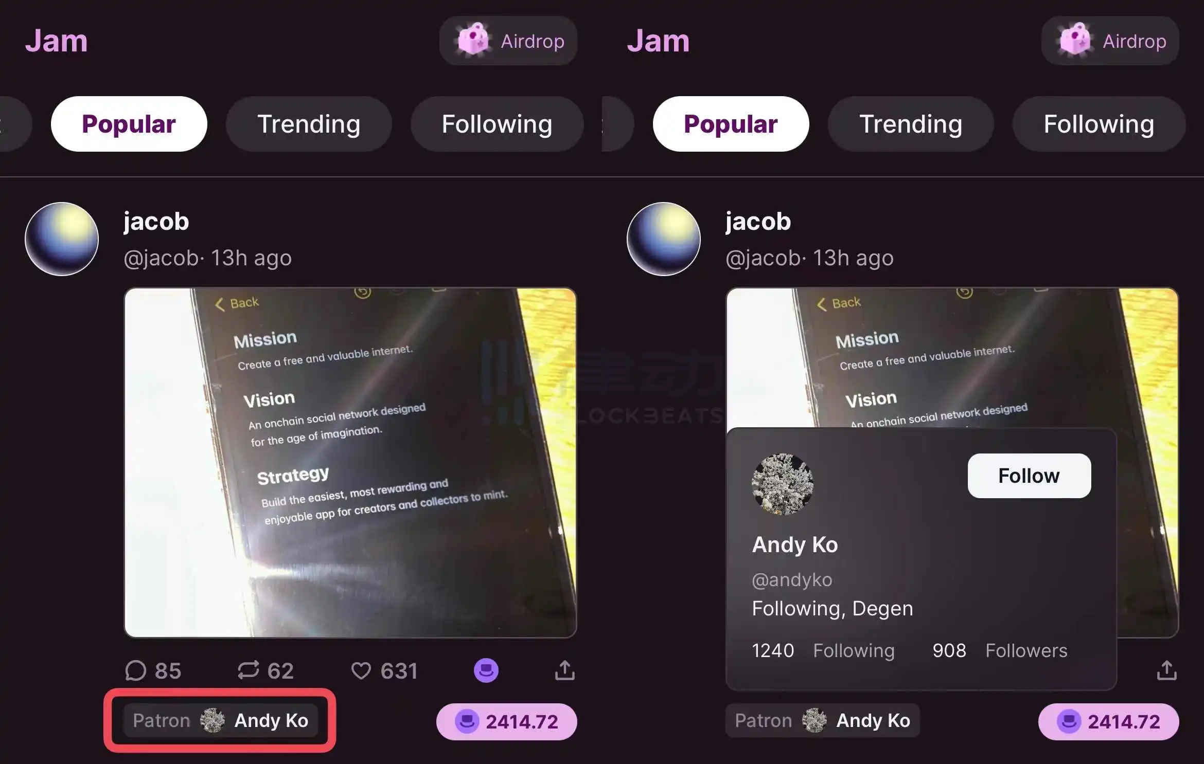 前文介绍道,Farcaster 作为深耕创作者文化的社交平台,上面既聚集了人,也聚合了内容,Jam 的出现则很好的为这些内容带来了金融属性。