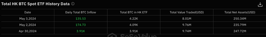 BTC 现货 ETF 总交易额 2,751 万美元,BTC 现货持有总量 4,220 枚 BTC,总净资产 2.5 亿美元;