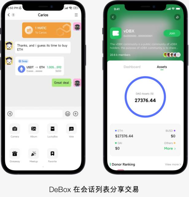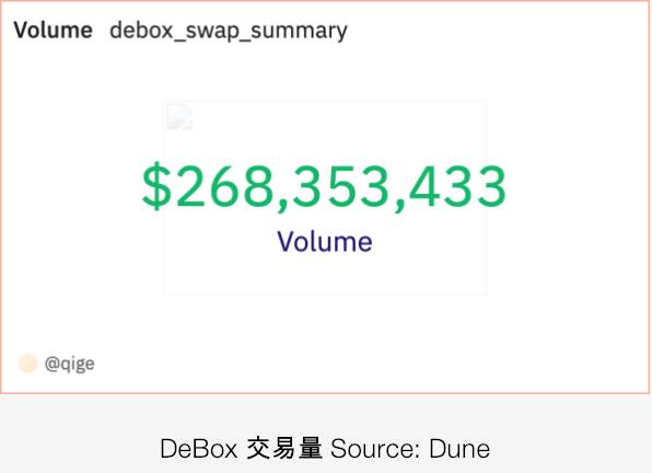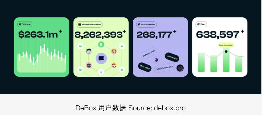 而DeBox在推出内置的通用交易市场与dex后,同样迎来了交易量与用户量的双重增长。DeBox为交易提供了简易的分享选项,用户可以将一笔交易分享到群组或者动态中,这给交易带来了全新的入口。而根据DeBox的路线图显示,关于交易资费的去中心化分配协议正在开发。