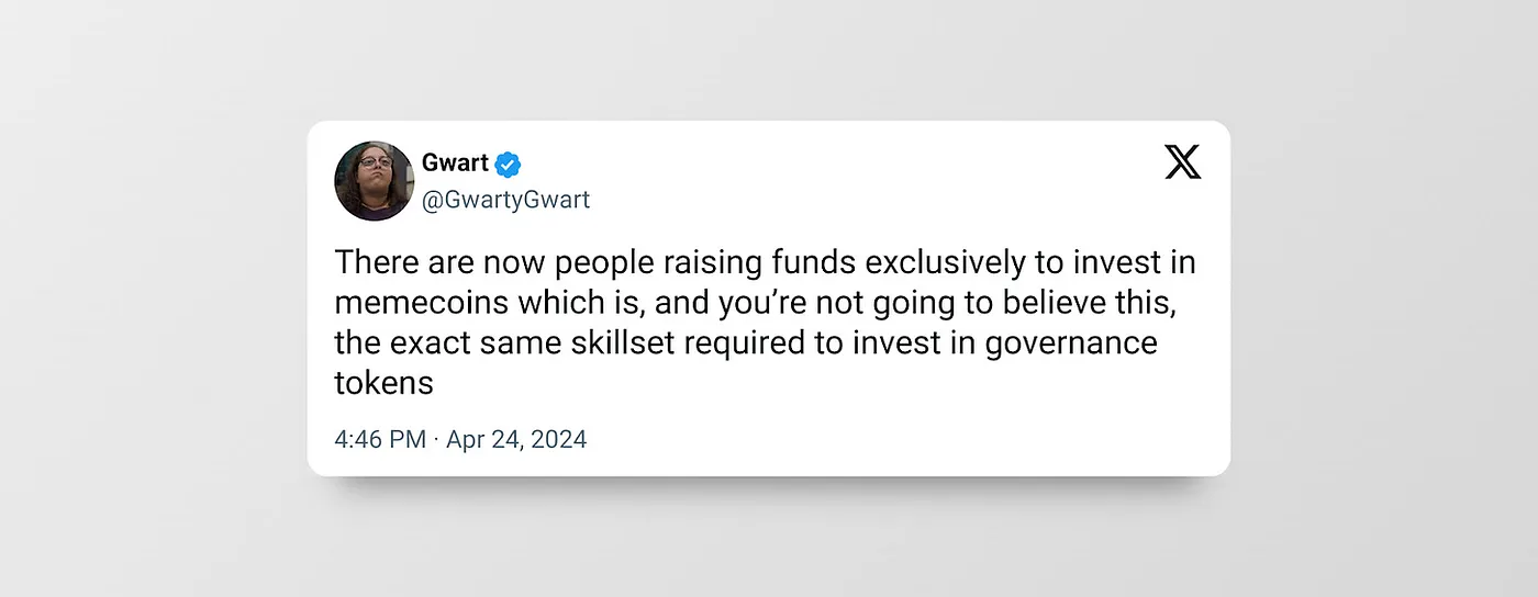 这并不是说治理代币没有用处。归根结底,它们的存在是一个不断的提醒,说明为什么需要更新法律。话虽如此,治理代币在许多情况下可能会造成和Meme一样多的伤害: