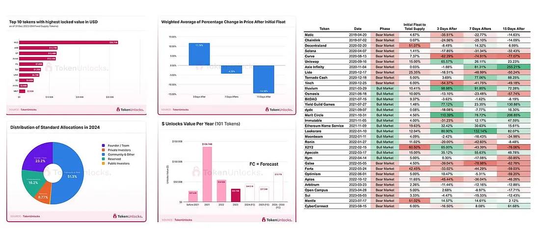 散户比以往任何时候都更加敏感于解锁。仅在5月,就有价值12.5亿美元的Pyth将被解锁,加上来自Avalanche、Aptos、Arbitrum等的数亿美元。