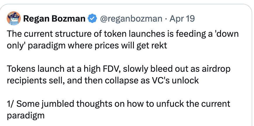 我不打算再写 47 篇推文来讨论点位、空头、高 FDV/低浮动的发行是多么愚蠢。但这种发行策略与宏观流动一样,是造成当前熊市的原因。这真的很糟糕!