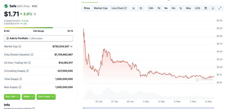 而以更聪明的方式发行的团队表现更好。例如,$SAFE 在一个波动的市场中发行,但它有42%的流通供应量,价格图表更加稳定,似乎在 $1.7B FDV 左右有真正的价格发现。