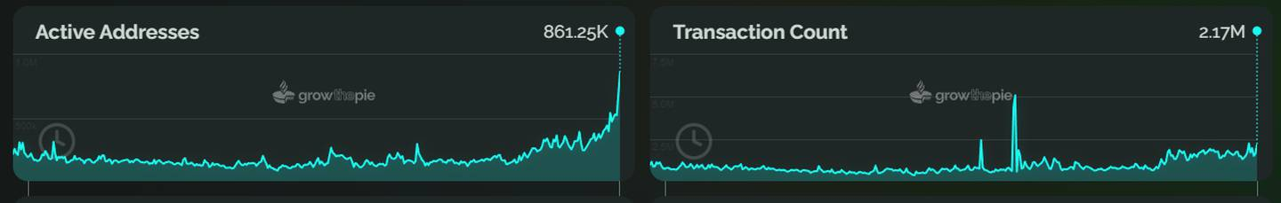 星期一,Arbitrum 的每日活跃地址数量激增至历史新高的 856,000 个,比五月初记录的 341,000 个增长了 150%。这一激增使 Arbitrum 的每日活跃用户数量超过了 Solana 的 833,000 个,尽管 Solana 最近因 memecoin 交易狂潮而受到欢迎。