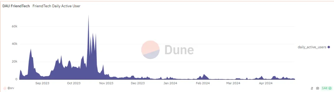 FriendTech在v1版本中用户为了博取空投来进行活跃获取积分,去年底到今年四月,由于FriendTech迟迟没有发币导致用户信心下降导致用户流失,在v2版本发币后绝大多数用户都选择了放弃。