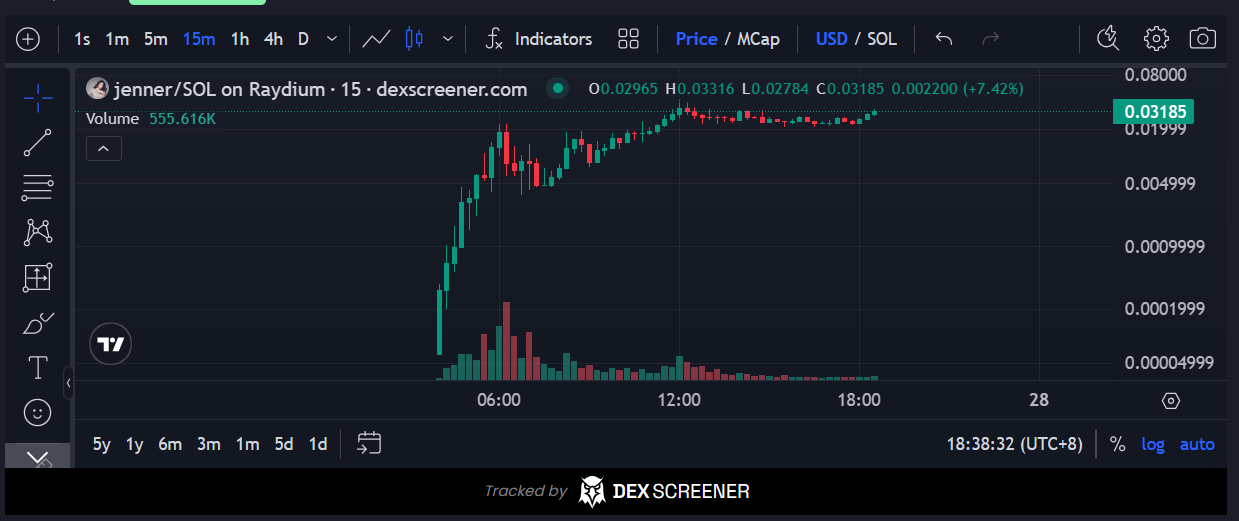 尽管对于 Dev 抛售代币的行为仍抱有质疑,但从价格走势看,散户们还是决定为 $Jenner 的故事买单。