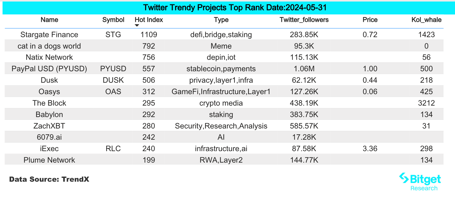 用户热搜代币&话题为: Babylon、PayPal(PYUSD)、Notcoin(NOT);