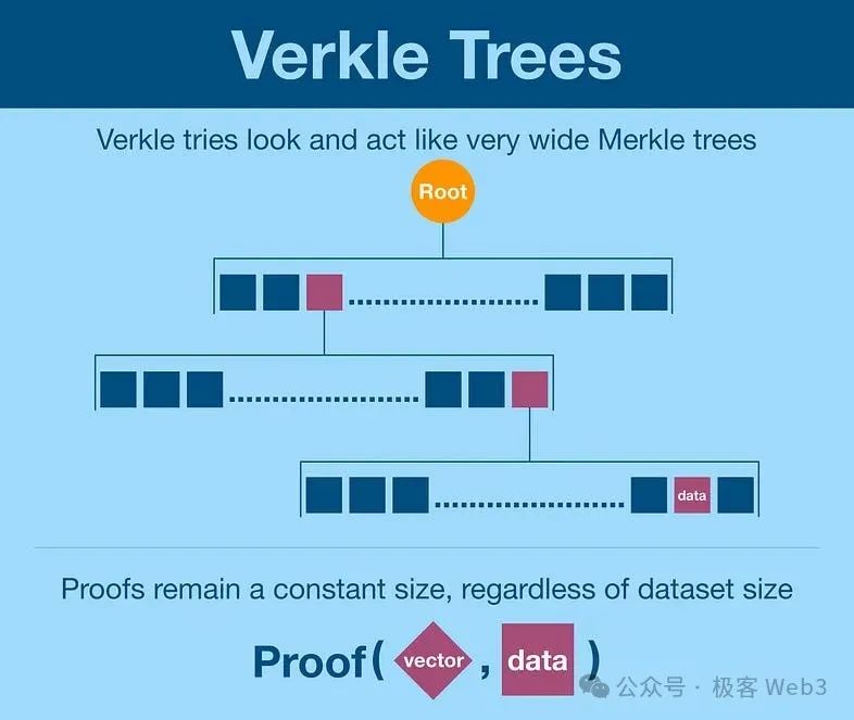 背景补充:Danksharding 路线图提出了 Verkle Tree 和无状态客户端的概念,届时普通的以太坊节点 / 客户端不必在本地存储完整的状态树,区块中会直接提供每笔交易关联的状态数据,并用 ZK 证明这些数据出自以太坊的状态树(Verkle Tree)。而 Verkle Tree 对以太坊现行的 Merkle Tree 式存储结构进行了大幅改进,以便于生成 ZK 证明某段数据出自 Verkle Tree 中。