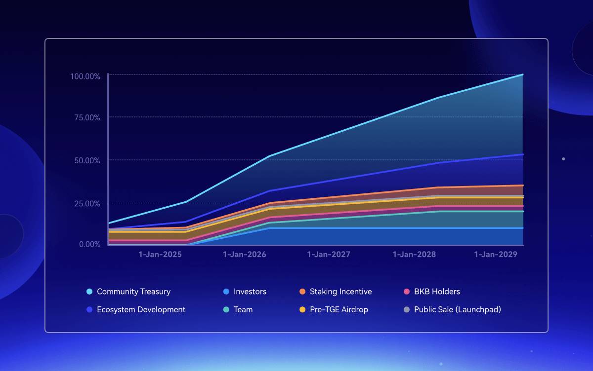 - 私募投资者和公募:私募投资者和公募共占 11.1%,其中私募的锁仓期和线性释放期确保了市场的稳定性,避免了大规模抛售的风险。公募部分相对较少,但通过 Launchpad 平台分配增加了普通用户的参与机会。