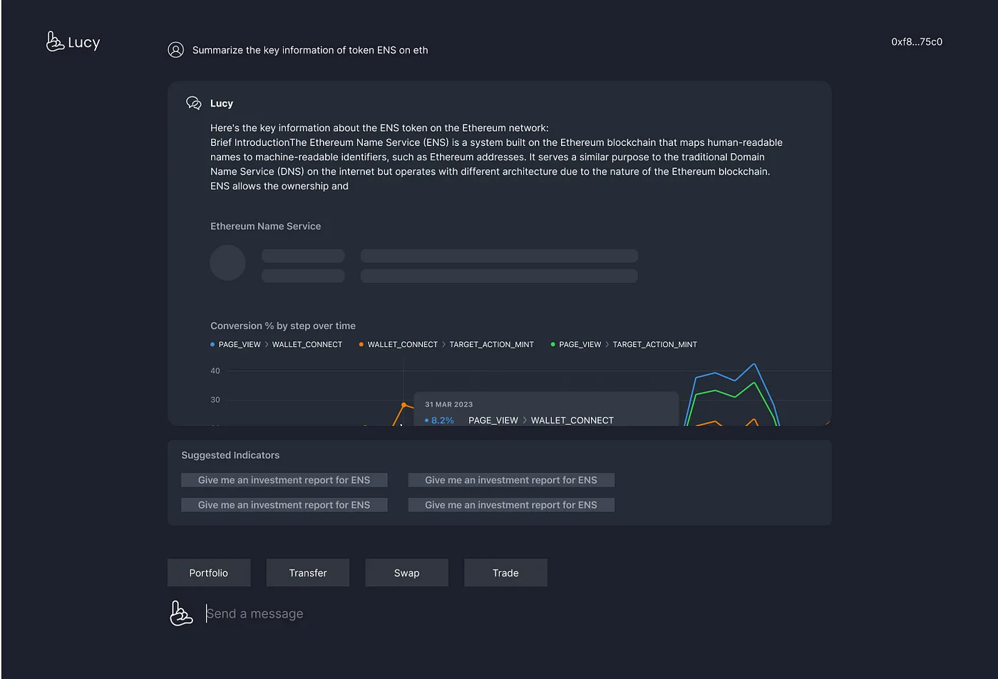 事实上,仅依靠 AI 驱动的对话作为互动入口,无法充分提升用户的 Web3 体验。用户访问相关数据和信息的最终目的是:通过完成一系列链上和链下操作来管理资产。