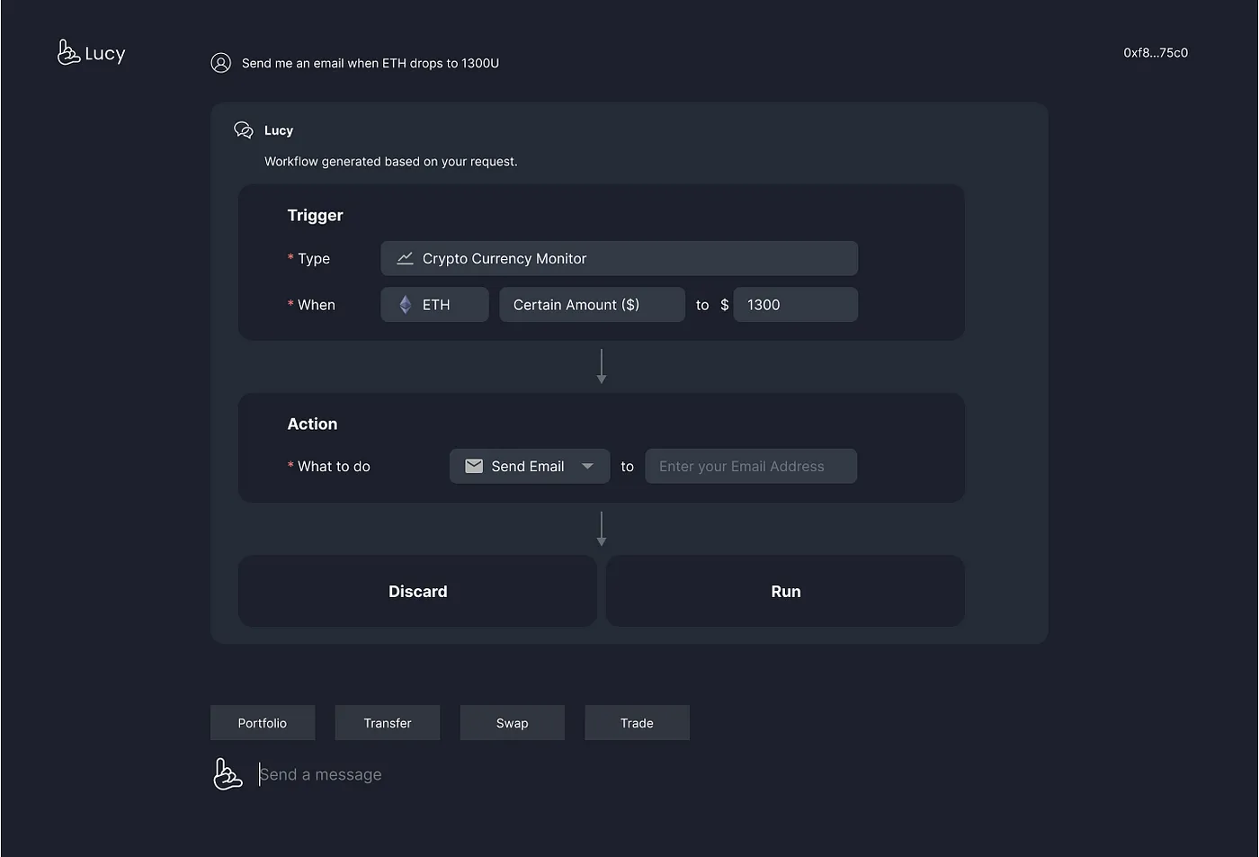 AI Chat 理解这些目标后,Lucy Beta 的算法会规划并搜索相关工作流程,列出实现这些目标所需的步骤。除必要的钱包操作外,每一步都设计为可自动执行,最大限度地减少用户手动操作,使过程尽可能顺畅和高效。