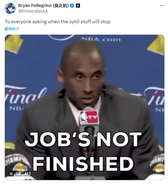 消息,6 月 7 日,LayerZero CEO Bryan Pellegrino 于社交平台发文表示:「致那些询问女巫(审查)工作什么时候结束的人」并配图,「工作尚未完成」。