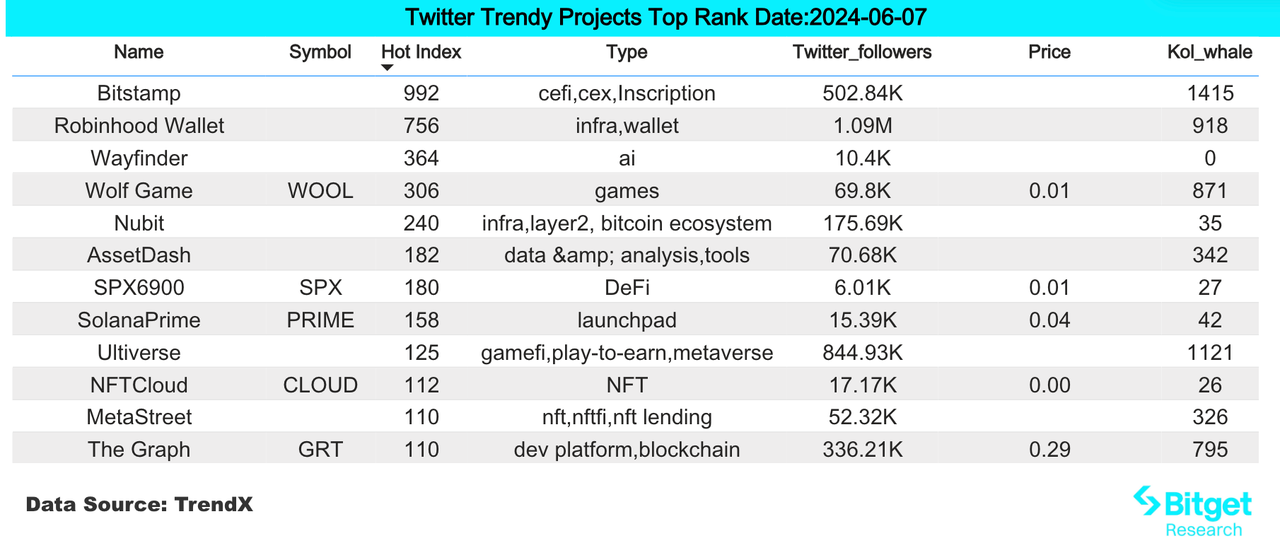 (1)英语地区的热搜上,有一定的对 Bitstamp 的关注度,主要系 Robinhood 发文称,将以 2 亿美元收购加密交易所 Bitstamp,以向美国以外地区扩展,本次收购将于 2025 年上半年完成,引来了较大的关注度。