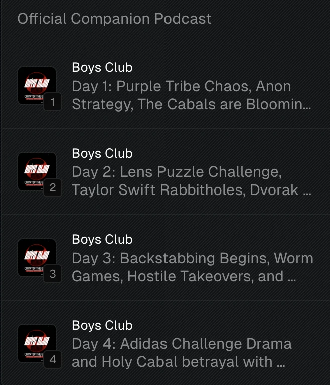 总而言之,CTG 的趣味在于它很好地做到了竞技性与人性博弈的结合。此外非常重要的一点则在于,CTG 会通过官方播客的形式来解说每日的实时赛况,以充分调动外部观众情绪,放大社交媒体的讨论度,进而为比赛造势。