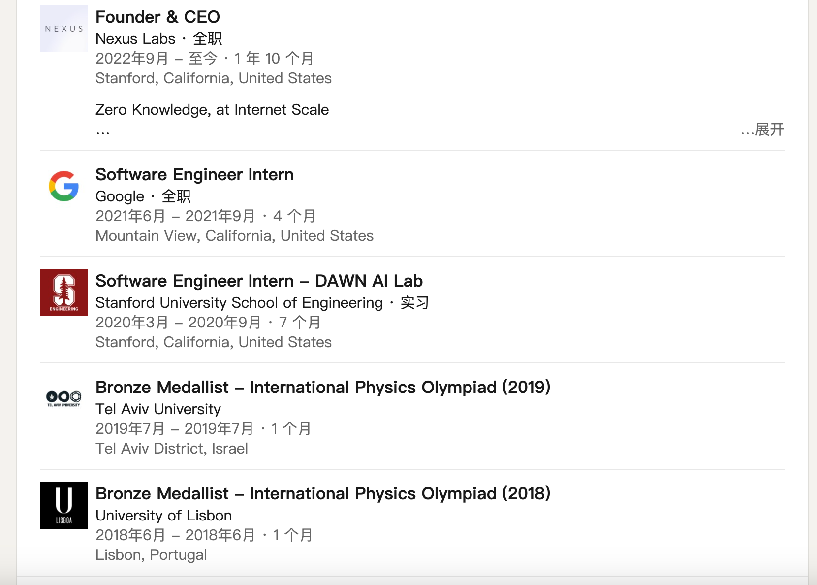 此外,Nexus的其他核心成员也由高度专业的密码学团队组成,并且在Web3行业履历颇丰,涉及 Difinity、Jump Crypto、Matter Labs、a16z训练营等多个组织的工作经验: