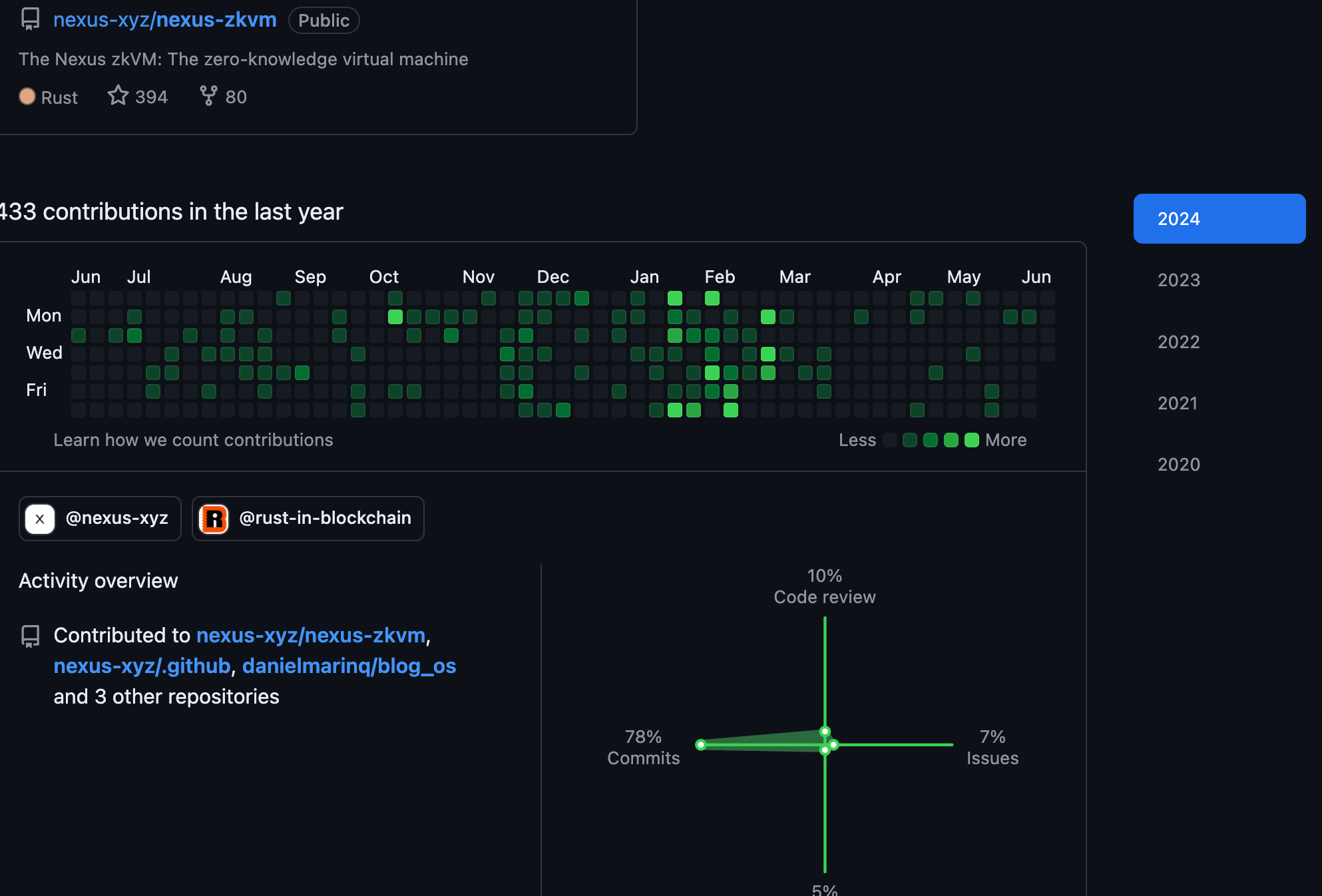 在光鲜的获奖和职位履历之外,如果你查阅Daniel的Github,会发现他在2020-2024年间都在持续不断地贡献代码,果然不懂代码的CEO不是好程序员。