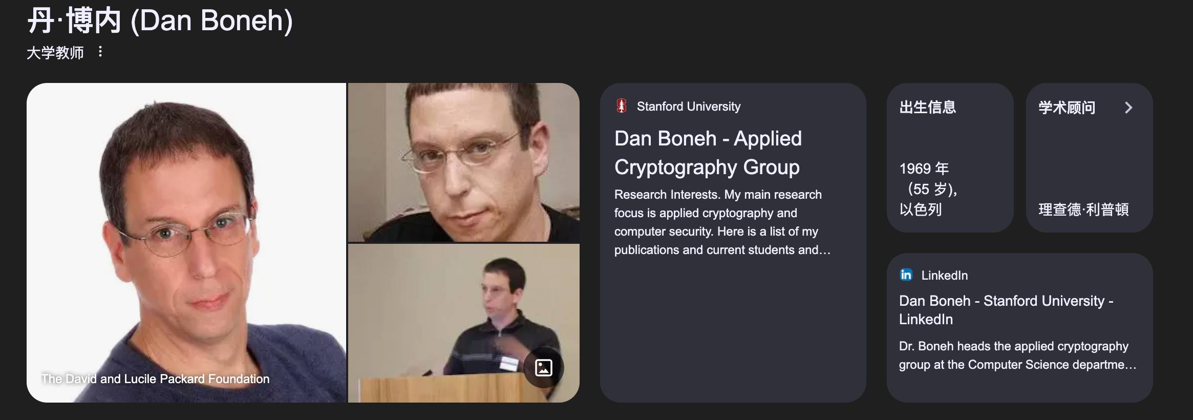 而这位 Dan 确实是行业大佬,现任斯坦福大学计算机科学教授。研究领域包括密码学、计算机安全和分布式系统,2016 年,Boneh 因其对密码学和计算机安全理论和实践的贡献而当选为美国国家工程院院士。