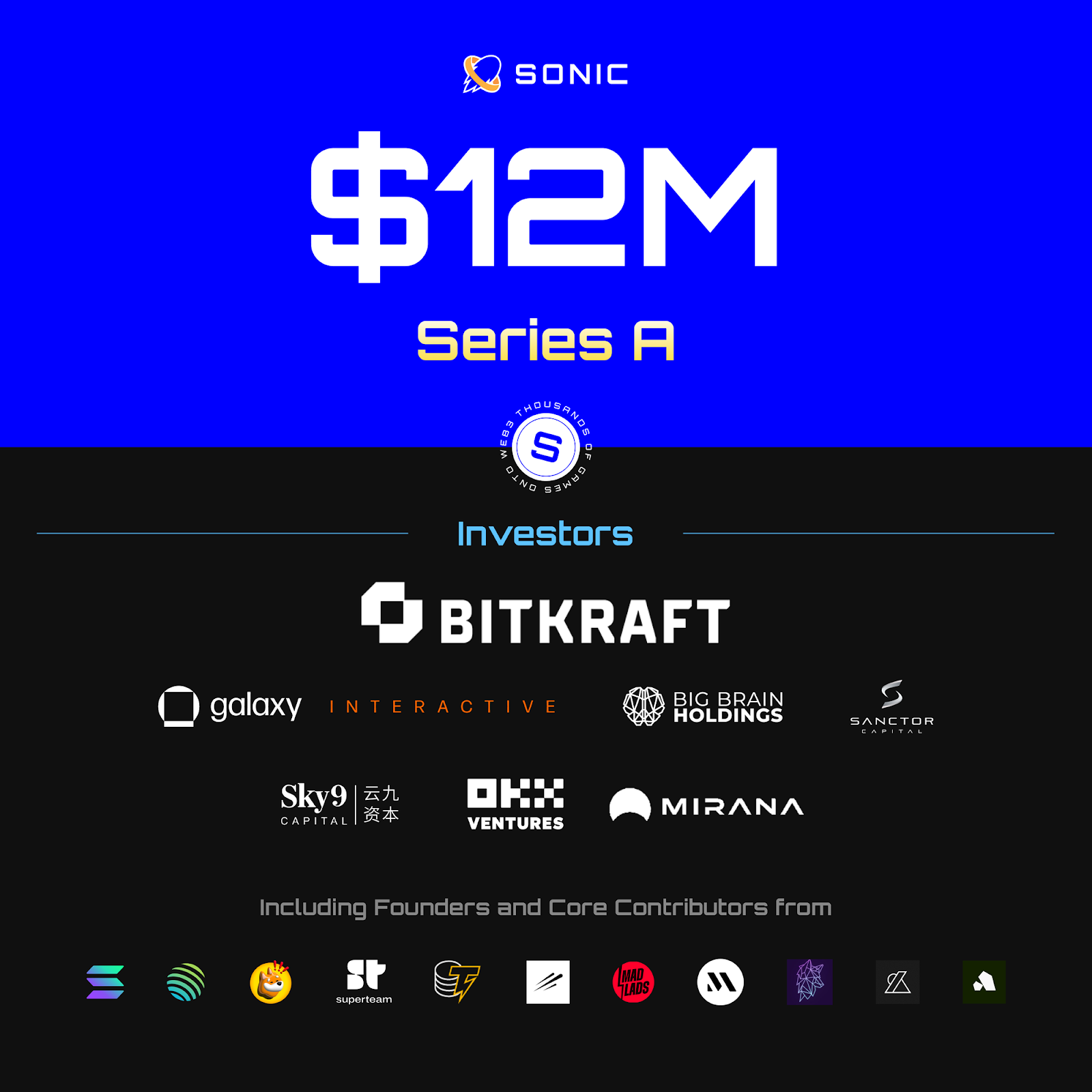 Solana 原子化的 SVM Layer2 Sonic宣布完成 1200 万美元 A 轮融资,由 Bitkraft 领投,Galaxy Interactive、Big Brain Holdings、Matt Sorg (Solana 创始团队) 、Nom (Bonk) 等多家机构与个人参投。
