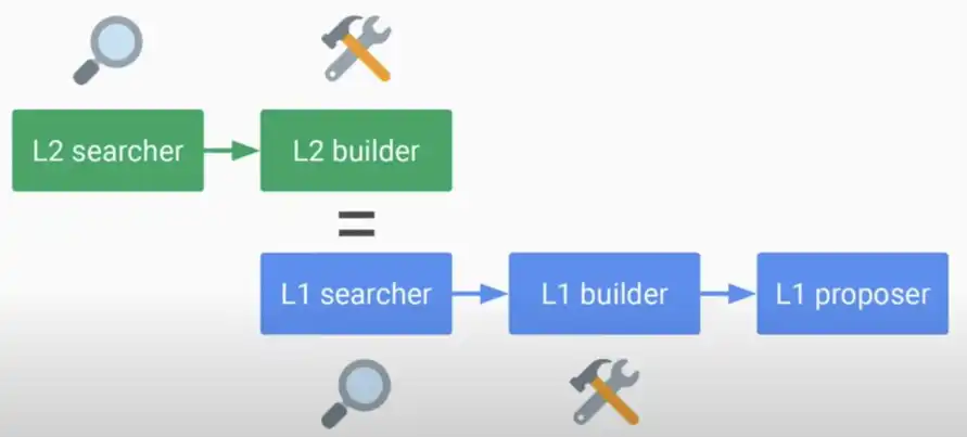 当下整体观察来看,Based Rollup 算得上以太坊二层扩展方式的巨大转变,将 Rollup 的排序直接委托在一层提议者,利用提议者与构建者的分离设计,让一层为 Rollup 执行所有的排序者角色。同时也让 MEV 得到扩展,这样 L2 搜索者可将交易捆绑发送给 L2 构建者,同样后者也是 L1 的搜索者,而这些完整的 L2 区块随后成为 L1 区块的一部分,最终由 L1 构建者和以太坊主网处理。