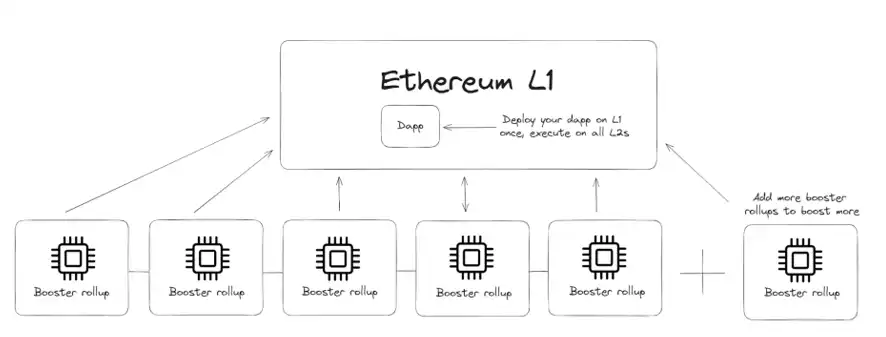 助推器(Booster)在 BBR 中是一个特殊的参与者,它负责优化交易批次,对交易数据进行压缩和并行处理多个交易批次的作用,实际作用是将执行和存储进行分离,保持 L2 执行的同时 L1 保持去中心化,并且让智能合约在 L1 和所有 BBR 上的地址保持一致。