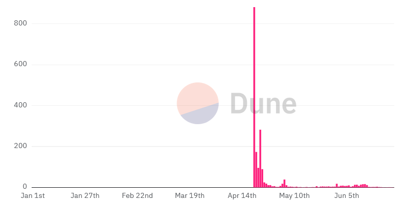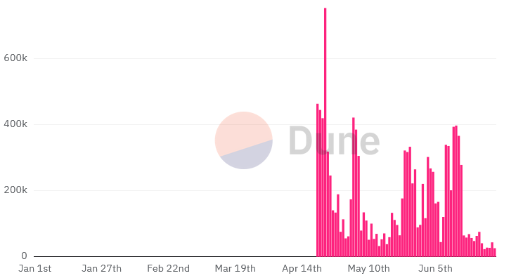 根据Crypto Koryo的Dune Analytics数据,6月22日至28日期间,Runes的日均交易量为37820笔,与6月9日至15日期间的日均33140笔相比,下降了近90%。