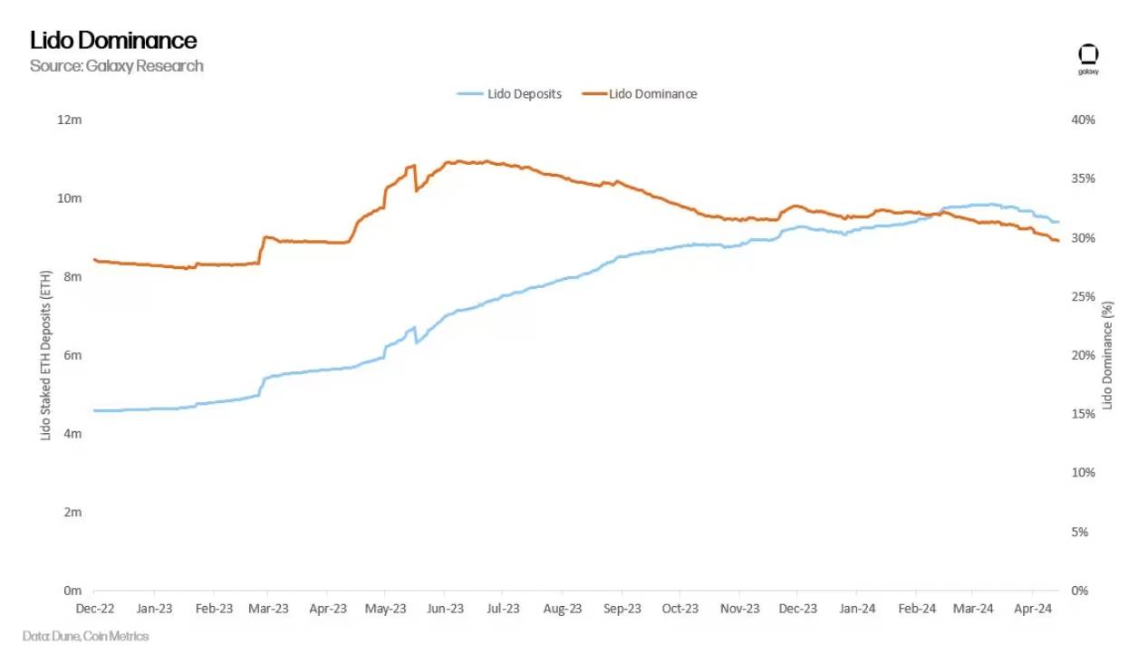 流动性质押代币 (LST) 主导地位:如果质押率增加,那么集中在一个质押池(如 Lido)中的 ETH 数量可能会增加,从而造成一个实体或智能合约应用程序的中心化风险,以及对以太坊安全性产生过大影响的风险。