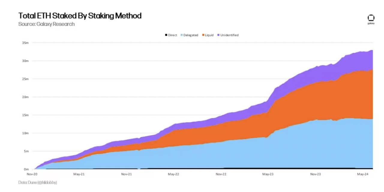 以太坊是按总质押价值计算最大的权益证明 (PoS) 区块链。截至 2024 年 7 月 15 日,ETH 持有者已质押价值超过 1110 亿美元的 ETH,占 ETH 总供应量的 28%。质押的 ETH 数量也称为以太坊的「安全预算」,因为质押者在发生双重支付攻击和其他违反协议规则的行为时,可能会受到网络的惩罚。作为维护以太坊安全的回报,质押者可通过协议增发、优先费用和最大可提取价值 (MEV) 等方式获得奖励。用户可以通过流动质押池轻松质押 ETH,而无需牺牲资产的流动性,这使得对质押的需求超出了以太坊开发人员的预期。根据目前的质押状态,开发人员预计 ETH 的质押率在未来几年还会进一步增长。为了缓解这种趋势,开发人员正在考虑对协议的增发政策进行重大改变。