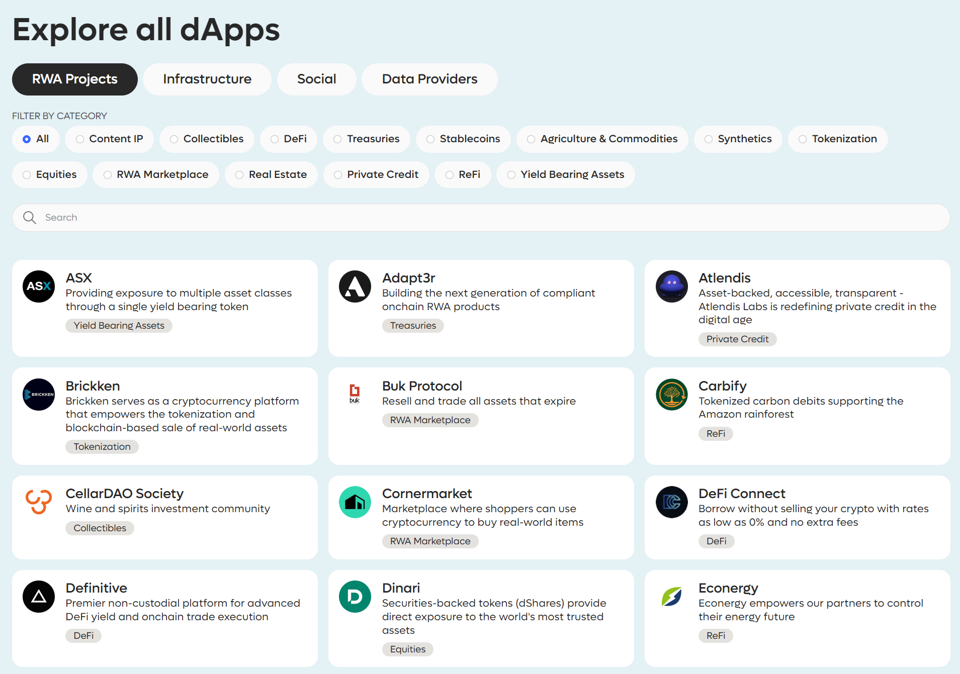 目前,Plume Network 已经吸引了超过 100 个项目基于其平台进行构建,涵盖收藏品、合成资产、奢侈品、房地产、借贷协议以及永续 DEX 等多个类别,多元化的生态系统也进一步展示了 Plume Network 以及 RWA 赛道的广泛应用潜力。