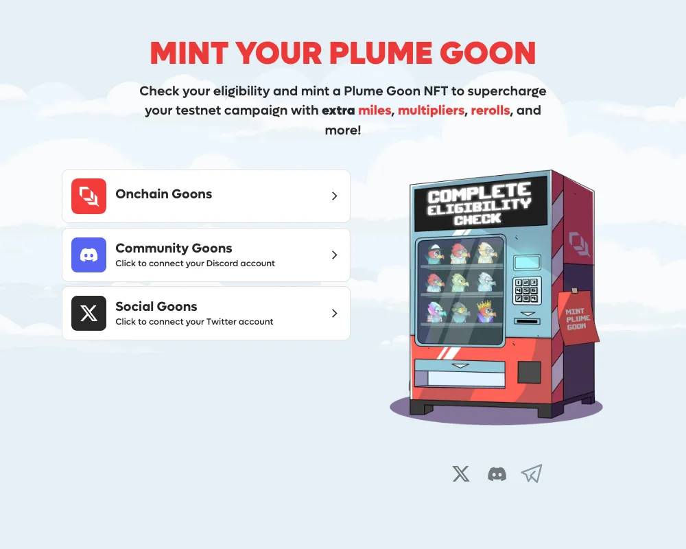 首先,用户可以参与铸造 Plume Goon NFT 获得积分加速。
